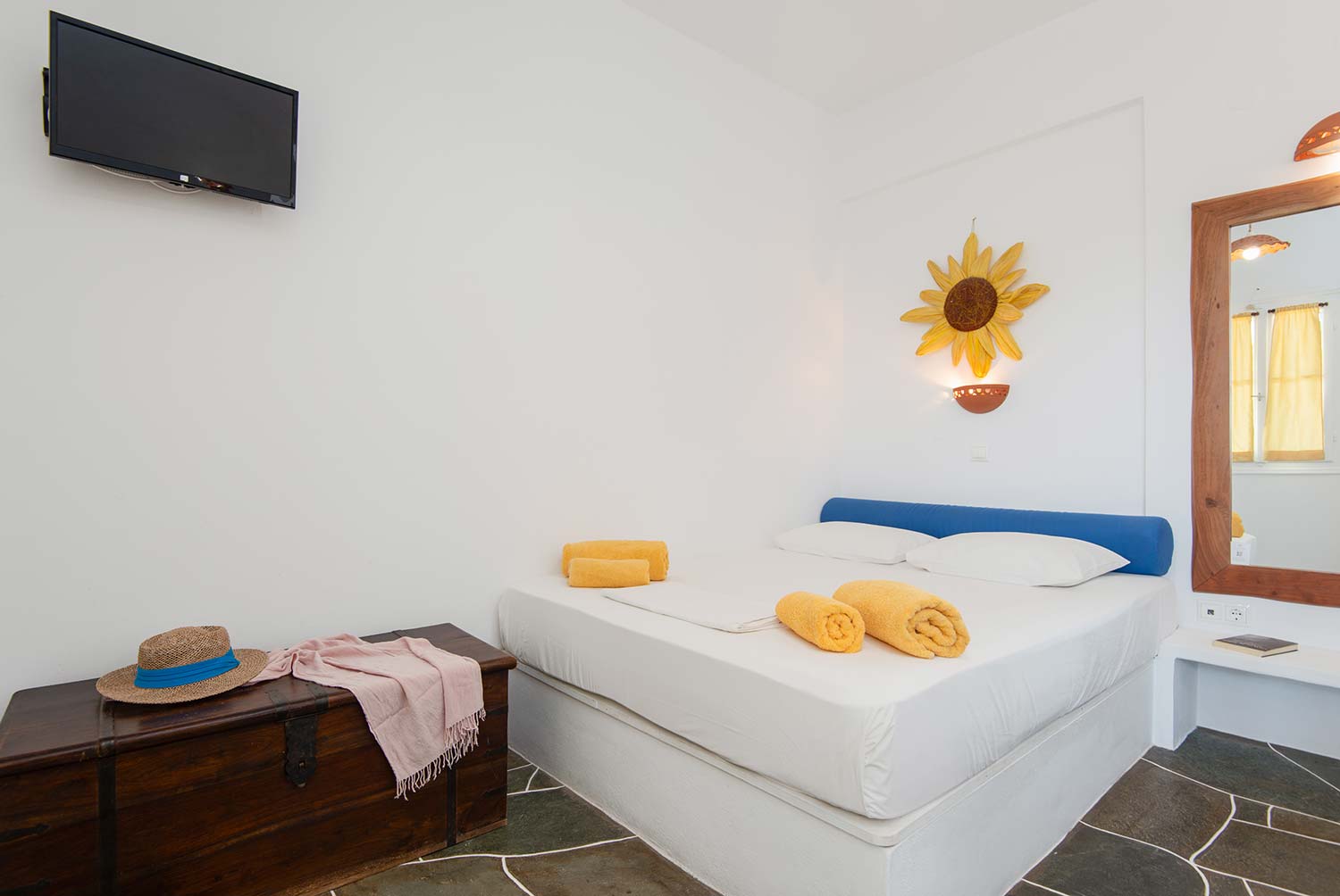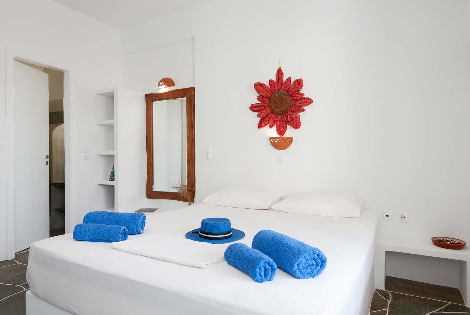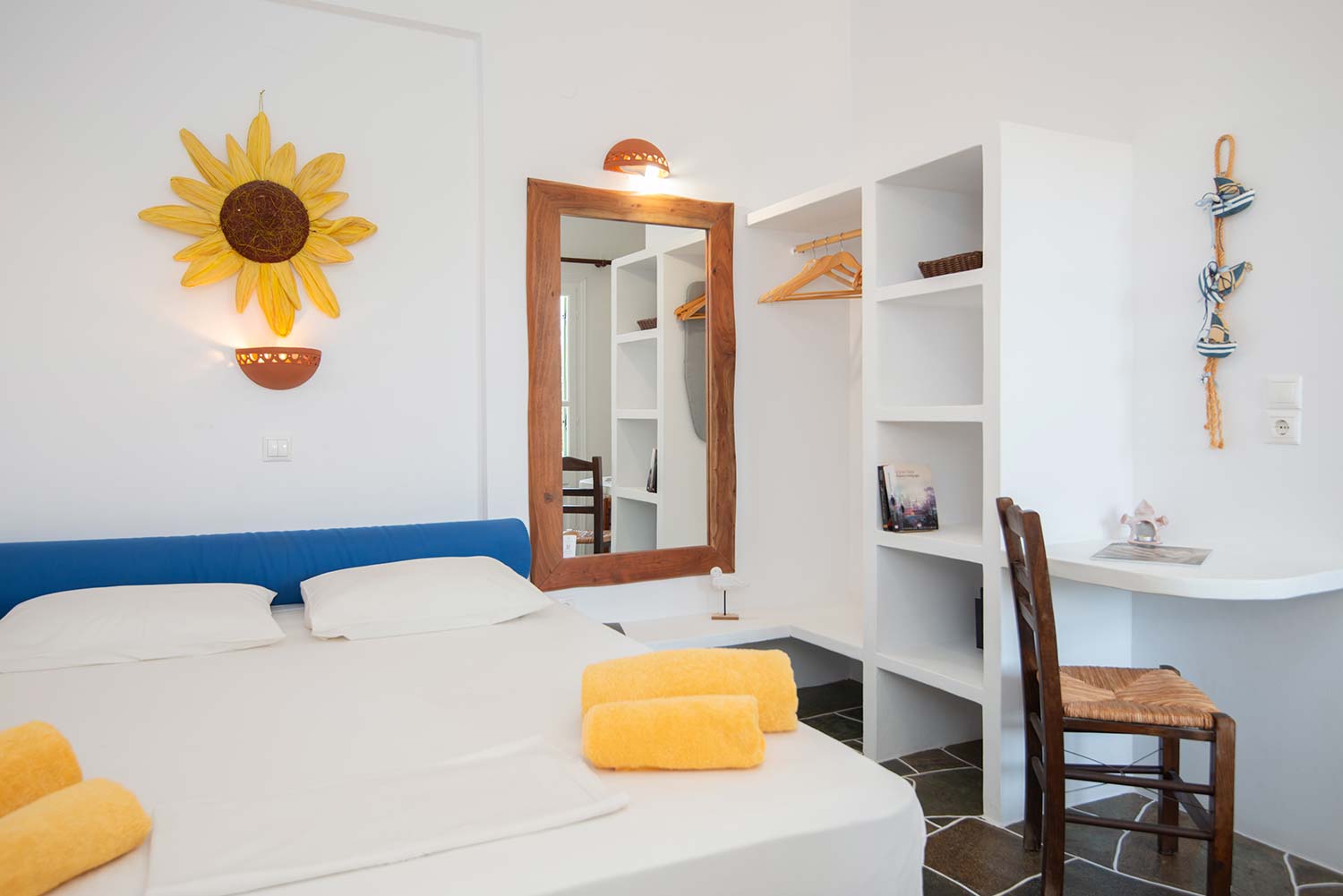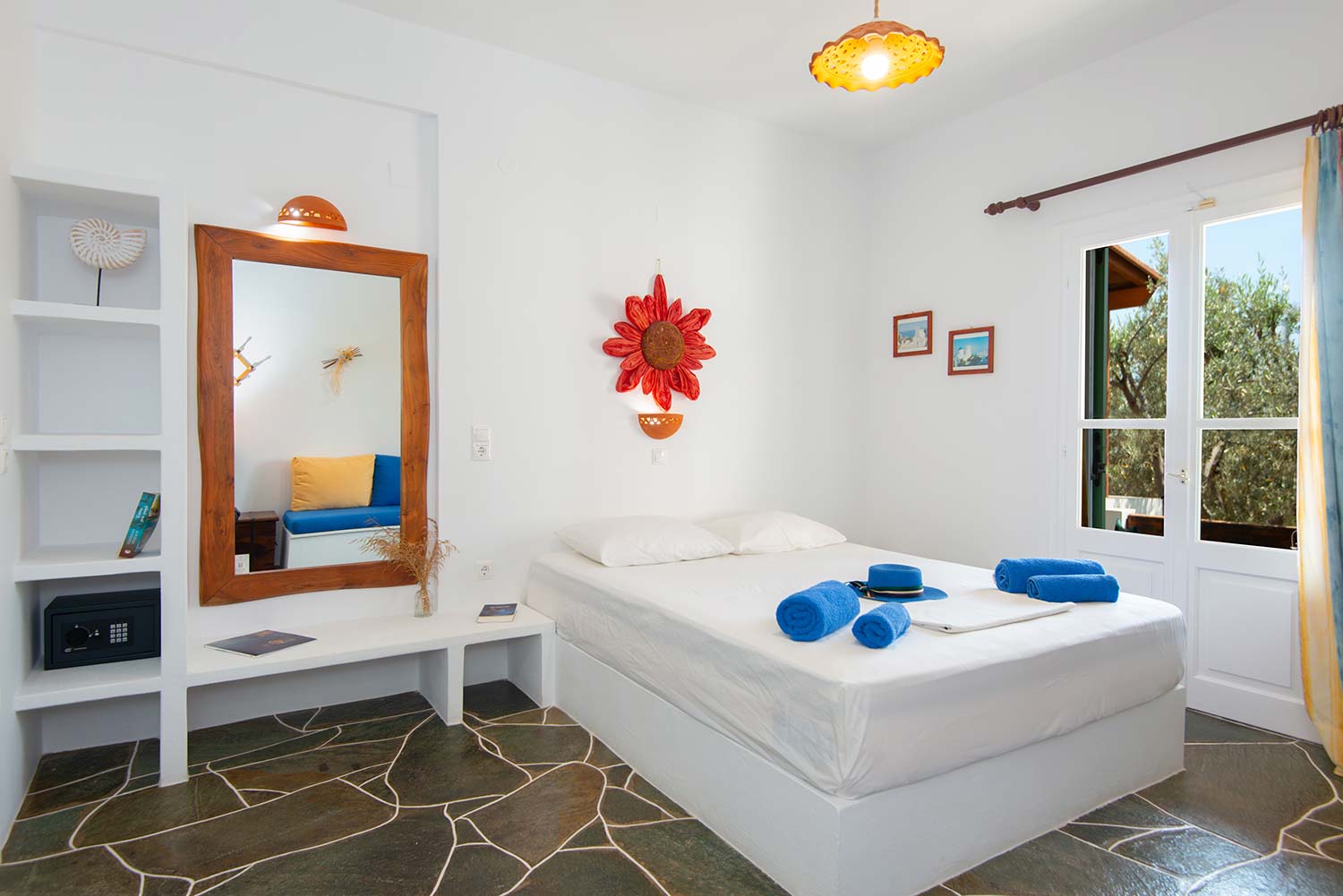 Surrounded by olive trees and Aegean plants and scents, these studios offer a warm and comfortable stay. They are located on the ground floor and feature a fully equipped kitchen, a comfortable bedroom with single or double beds, a private bathroom, and a balcony with garden views, where you can enjoy your coffee or relax in the cool breeze. They can accommodate 2 or 3 people, as some have a living room with a built-in sofa. Ideal for those seeking tranquility, comfort, and authentic hospitality.